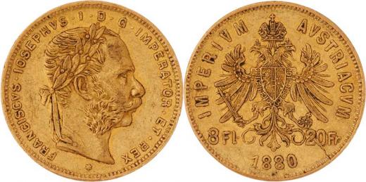 8 Zlatník 1880 (pouze 62.000 ks), 6.427g, nep.hr., nep.rysky, nep.vady razidla, pěkná patina