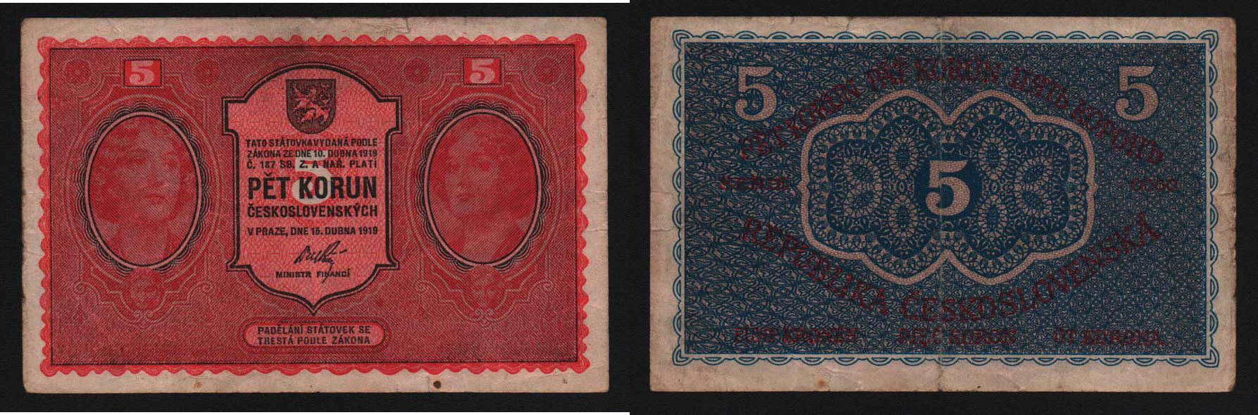5 Koruna 1919, série 0060, BHK.8, natrž. "neperf."