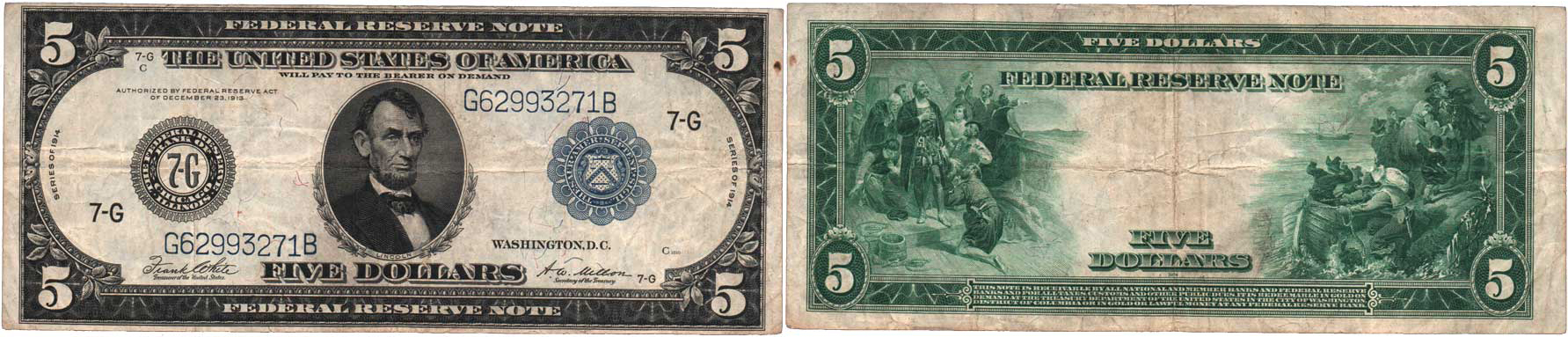 5 Dolar 1914, 7G (Chicago), modrá pečeť, Pick.359b