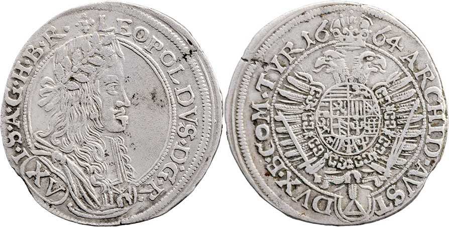 XV Krejcar 1664, Neuburg a.Inn-Triangel, Nech.2033, M-A.163, 4.551g, dr.hr., dr.rysky, pěkná patina