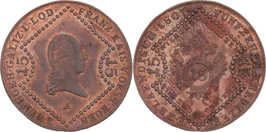 Cu 15 Krejcar 1807 A, 12.666g, pěkná patina