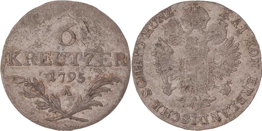 6 Krejcar 1795 A, 2.192g, nedor., pěkná patina R!