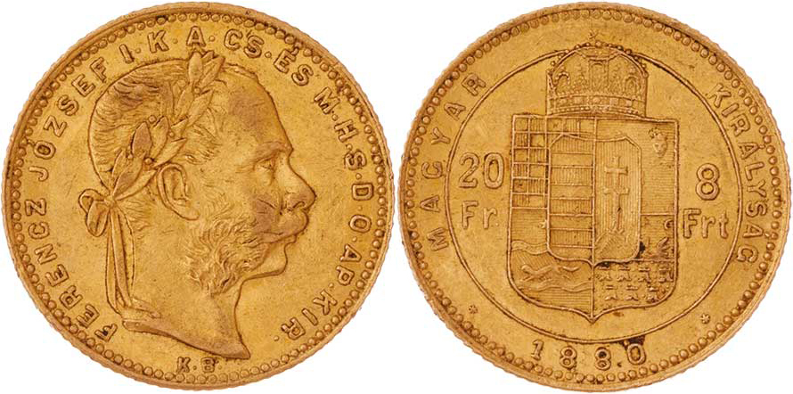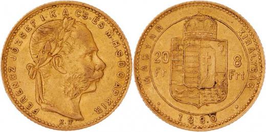 8 Zlatník 1880 KB - II.typ, 6.430g, dr.hr., nep.rysky, pěkná patina