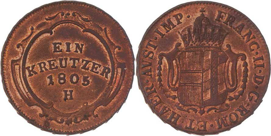 Cu Krejcar 1805 H, Günzburg, 5.589g, nep.vady mater., téměř