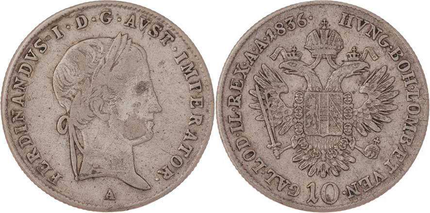 10 Krejcar 1836 A - FERDINANDVS, 3.887g, nep.hr., nep.rysky, patina R!