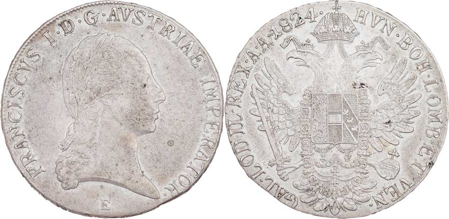 Tolar 1824 E, Karlovský Bělehrad, 27.870g, dr.hr., dr.rysky, pěkná patina R!