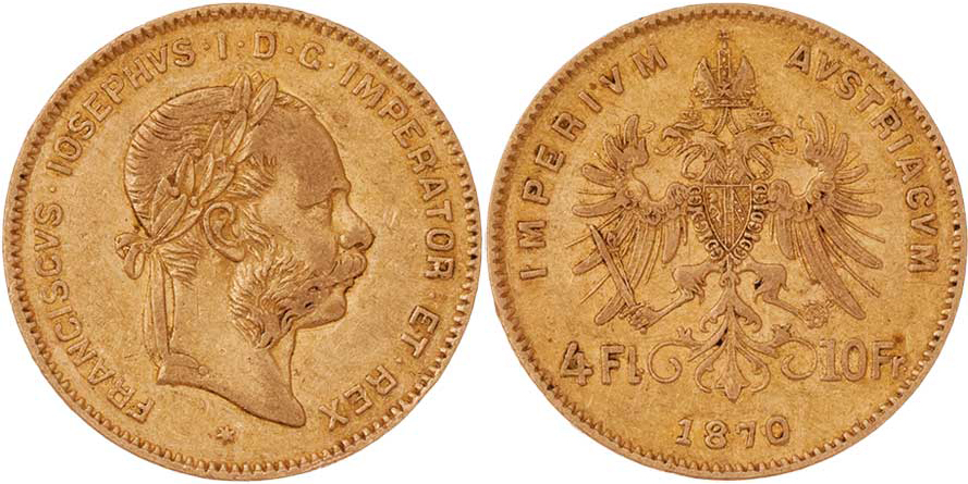 4 Zlatník 1870 (pouze 7.440 ks), 3.199g, nep.hr., nep.rysky, pěkná patina RR!