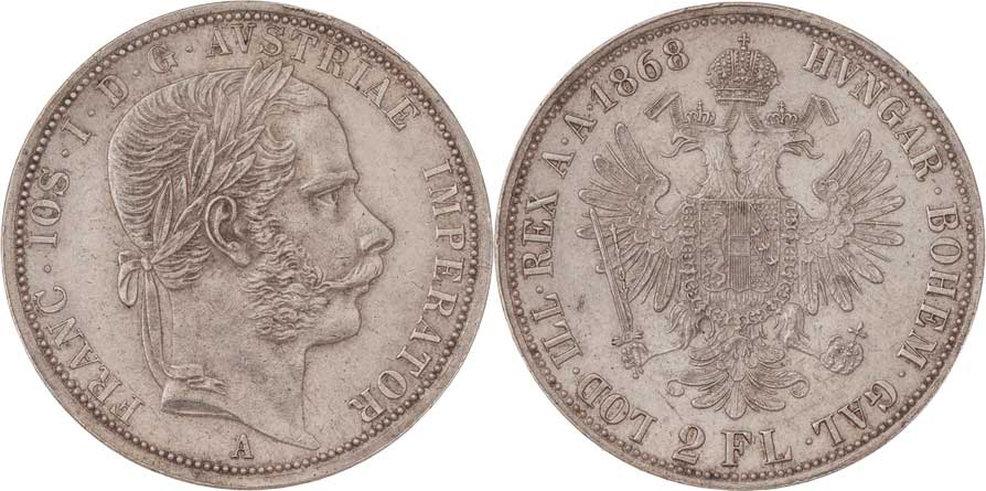 2 Zlatník 1868 A, 24.695g, nep.hr., nep.rysky, pěkná patina, téměř R!