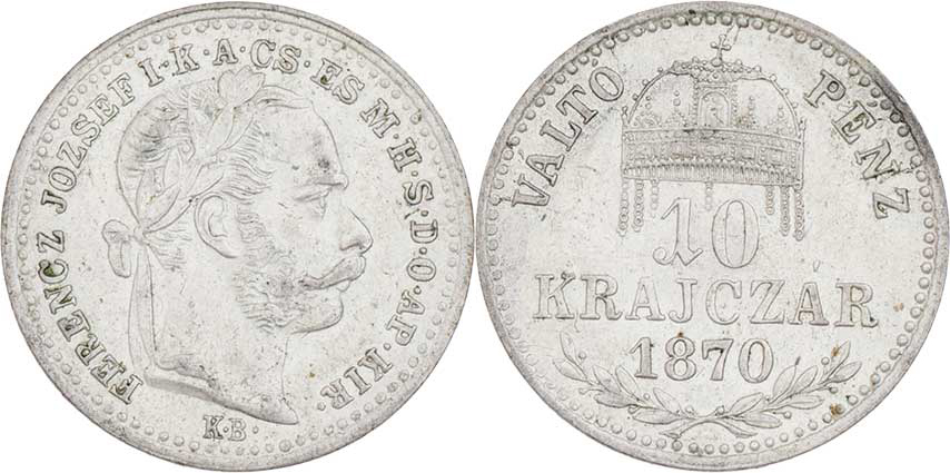10 Krejcar 1870 KB - krátký opis, 1.695g