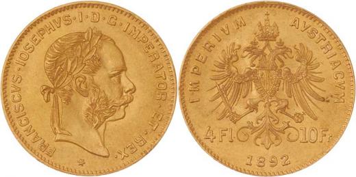4 Zlatník 1892 - novoražba, 3.226g, nep.hr. ražbou