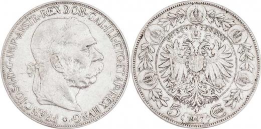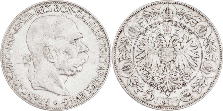 5 Koruna 1907, 23.972g, dr.hr., dr.rysky