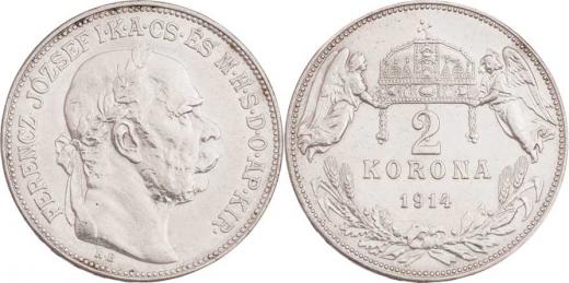 2 Koruna 1914 KB, 10.000g, nep.hr., nep.rysky R!