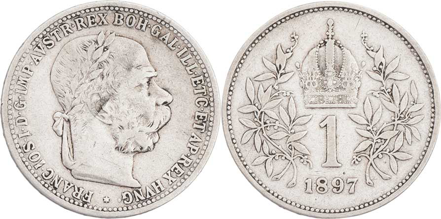 Koruna 1897, 4.932g, nep.hr., nep.rysky, pěkná patina R!