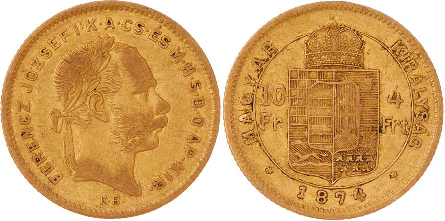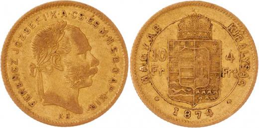 4 Zlatník 1874 KB (pouze 8.229 ks), 3.176g, nep.hr., nep.rysky, téměř RR!