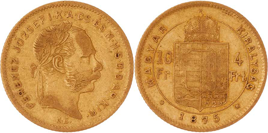 4 Zlatník 1875 KB (pouze 11.000 ks), 3.184g, nep.hr., nep.rysky, pěkná patina R!