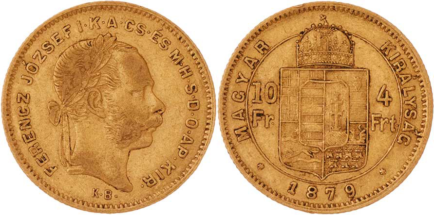 4 Zlatník 1879 KB (pouze 12.000 ks), 3.194g, dr.hr., nep.rysky, pěkná patina R!