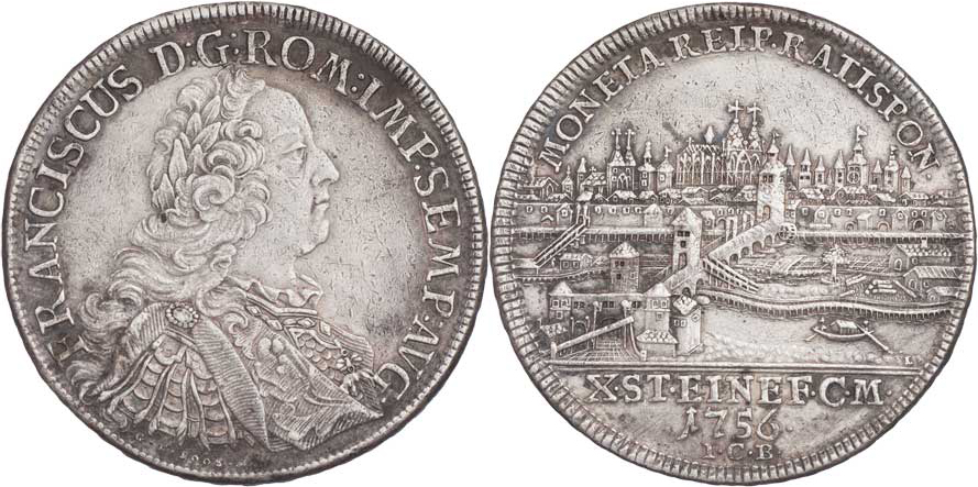Tolar 1756 ICB - s portrétem Františka I. a pohledem na město, KM.372, Dav.2618, 27.891g, dr.hr., dr.rys., patina