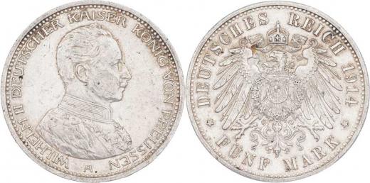 5 Marka 1914 A - císař v uniformě, KM.536 (Ag900), 27.773g, dr.hr., dr.rysky, pěkná patina