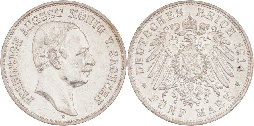 5 Marka 1914 E, KM.1266 (Ag900), 27.786g, nep.hr., nep.rysky