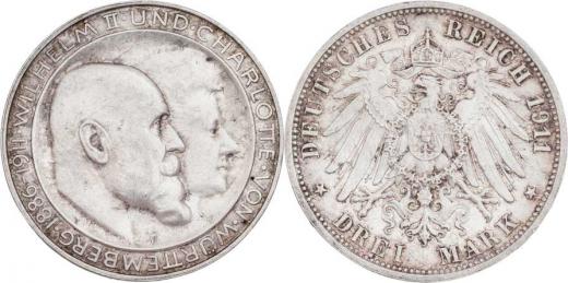3 Marka 1911 F - stříbrná svatba, KM.636, 16.679g, nep.hr., nep.rysky