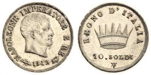 10 Soldi 1812 V, Benátky, Cr.6.2, 2.496g, nep.rysky, dr.hr.ražbou, téměř R!