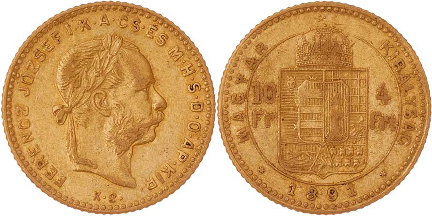 4 Zlatník 1891 KB - se znakem Rijeky (pouze 32.000 ks), 3.198g, nep.hr., nep.rysky, pěkná patina R!