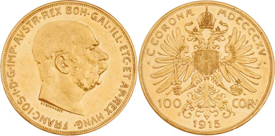 100 Koruna 1915 - novoražba, 33.862g, dr.hr., nep.rysky