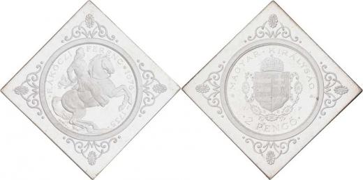 2 Pengö 1935 BP/UP - Ferenc Rakoczi - klipa - pozdější ražba, 35x35 mm, 20.213g, Husz.2310, patina
