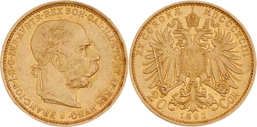 20 Koruna 1893, 6.765g, nep.hr., nep.rysky, pěkná patina