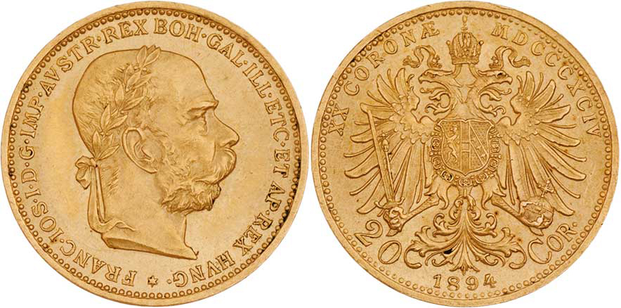 20 Koruna 1894, 6.769g, nep.hr., nep.rysky