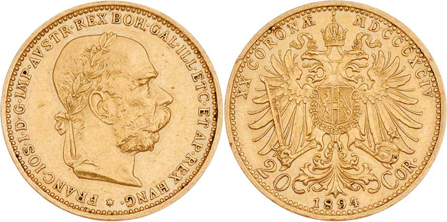 20 Koruna 1894, 6.763g, dr.hr., dr.rysky