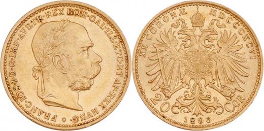 20 Koruna 1896, 6.775g, nep.hr., nep.rysky
