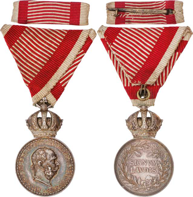 Signum Laudis - stříbro, Marko.146a, VM1.29-III-C, Nepunc., patina, původní válečná stuha, malá stužka
