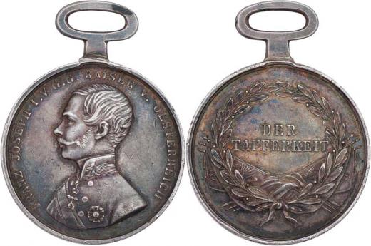 Malá stříbrná medaile za statečnost, Marko.225, VM1.5-VIII-D, hlava zleva, typ 1859 - 1866, Nesign. (Böhm), nep.hr., dr.rysky, krásná patina, bez stuhy