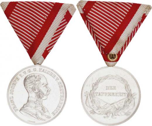 Velká stříbrná medaile za statečnost, Marko.230a, VM1.5-X-d, vydání z let 1914 - 1917, Sign.Leisek, puncované Ag, dr.hr., rysky, nepůvodní válečná stuha