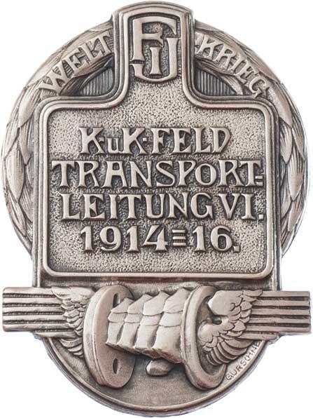 K.u.K. Feld Transportleitung VI. 1914-1916, Sign. Gurschner, Ag 27x37 mm se zavíracím špendlíkem, 2x puncováno na jehlici R!