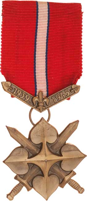 Junácký kříž Za vlast - 3.třída, VM.165-C, patinovaný bronz, udělený na stuze Čsl.revoluční medaile