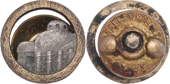 Miniatura odznaku Za budování čsl.opevnění 1935-1938, Sign.Karnet-Kyselý, bronz 13mm s upínacím šroubem R!
