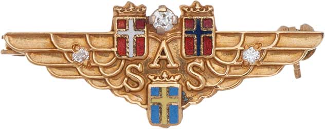 Skandinávská letecká liga - zlatý členský odznak se třemi diamanty, čísl.18083, Punc. Au750, 2.234g R!