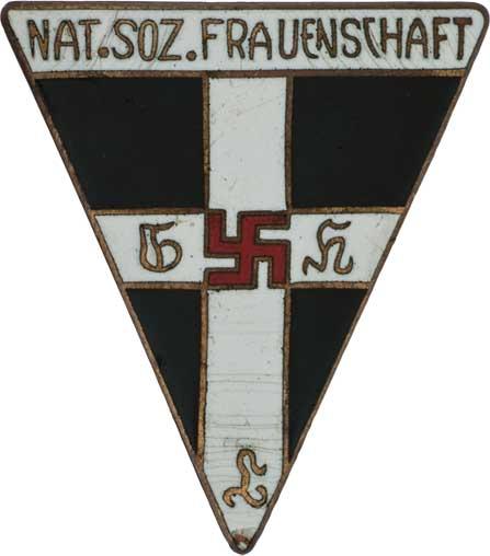 Nationalsozialistische Frauenschaft, H-H.9118f, velký typ, zn."GES.GECH.", postříbřený smaltovaný bronz 40x46 mm se zavíracím špendlíkem, pošk.smalt