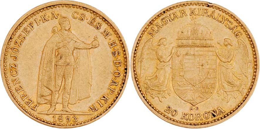 20 Koruna 1893 KB, 6.764g, hrana, dr.rysky, patina