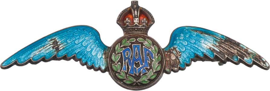 RAF - odznak přísl. vojenského letectva cca 1939 - 1945, Nesign., Punc. Ag917, 60x21 mm se zavíracím špendlíkem, poškozený smalt křídel