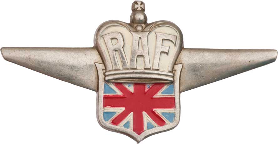 RAF - odznak přísl. vojenské ambulance cca 1939 - 1945, Sign.Coro, částečně smalt. bílý kov 75x39 mm se zav.špendlíkem (nositel R.Hering z Volyně, přísl.RAF)