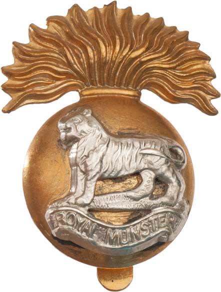 Royal Munster - čepicový plukovní odznak, Sign.Gaunt- London, část. postř. bronz 34x42 s upínací patkou