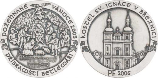 Příbramští betlémáři - PF 2006 - klanění tří králů, notový zápis, opis / kostel sv. Ignáce v Březnici, opis, Sign., Ag925, 50mm, 72.880g, č.23 z 44ks RR!