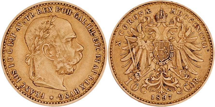 10 Koruna 1897, 3.375g, nep.just., nep.hr., nep.rysky, pěkná patina