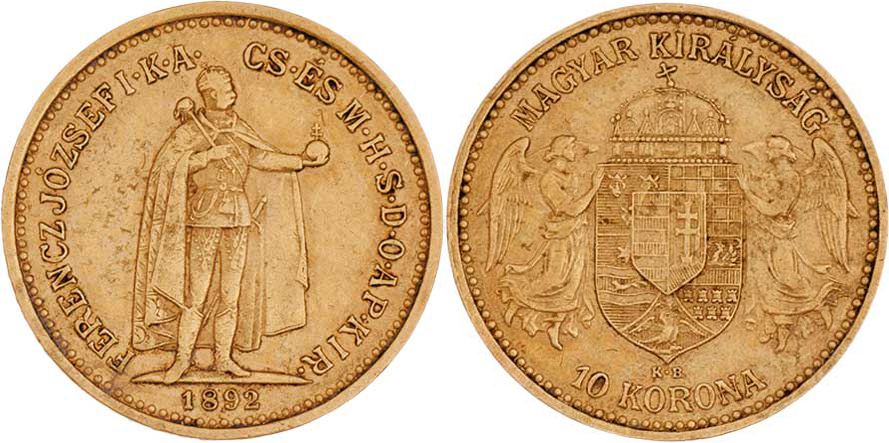 10 Koruna 1892 KB, 3.374g, dr.hr., nep.rysky, skvrnky, patina