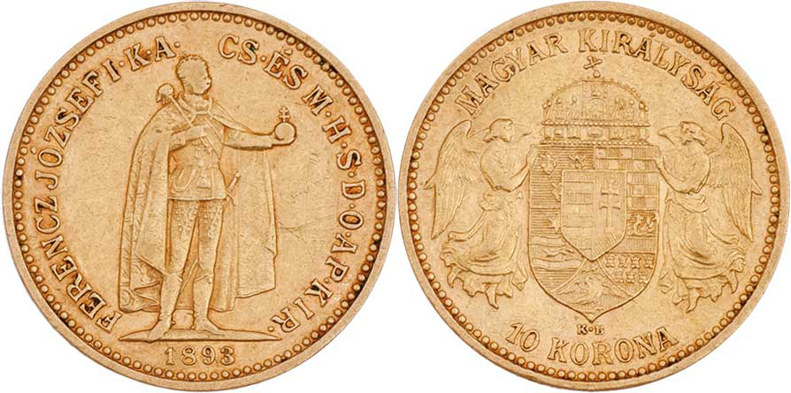 10 Koruna 1893 KB, 3.368g, nep.hr., dr.rysky, patina
