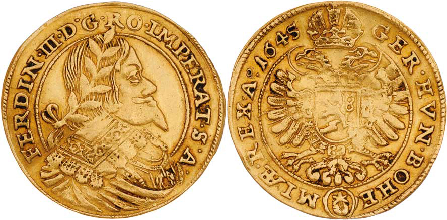 2 Dukát 1645, Praha-Wolker, J.20b, MKČ.1163, 6.836g, mírně zvlněný, nep.dvojráz, nep.hr., pěkná patina RR!