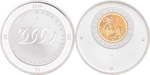2000 Koruna 2000 - mileniová ražba s hologramem, (bimetal 3.111g Au + 31.10g Ag, 17.000 ks), kapsle, avers v kvalitě "0", revers v kvalitě